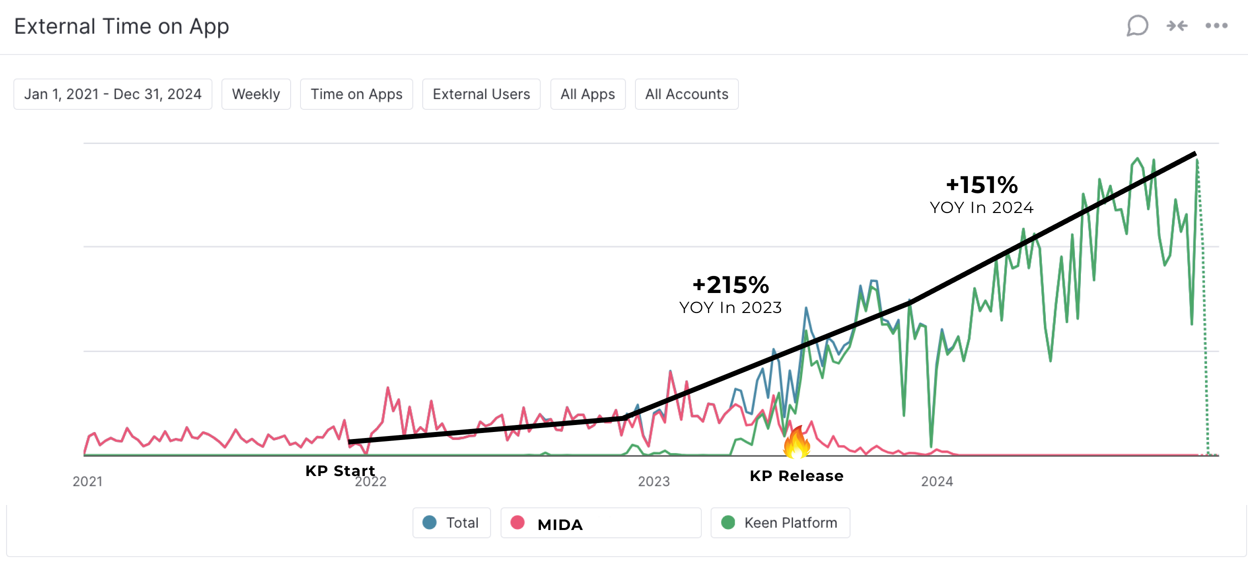 The redesigned data visualizations enhanced visual clarity, and have proven to be a valuable asset for both Keen and their clients, fostering greater engagement and ultimately contributing to improved marketing investment outcomes.